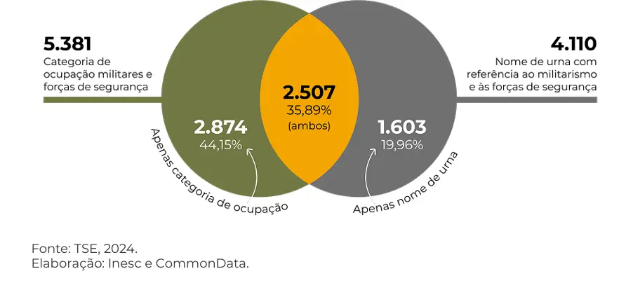 Na soma de fatores – nome de urna ou ocupações relacionadas a militares e membros das forças de segurança – as eleições de 2024 têm mais de 6.000 candidaturas registradas com esse apelo, o que corresponde a 1,53% do total de postulantes aos cargos municipais.