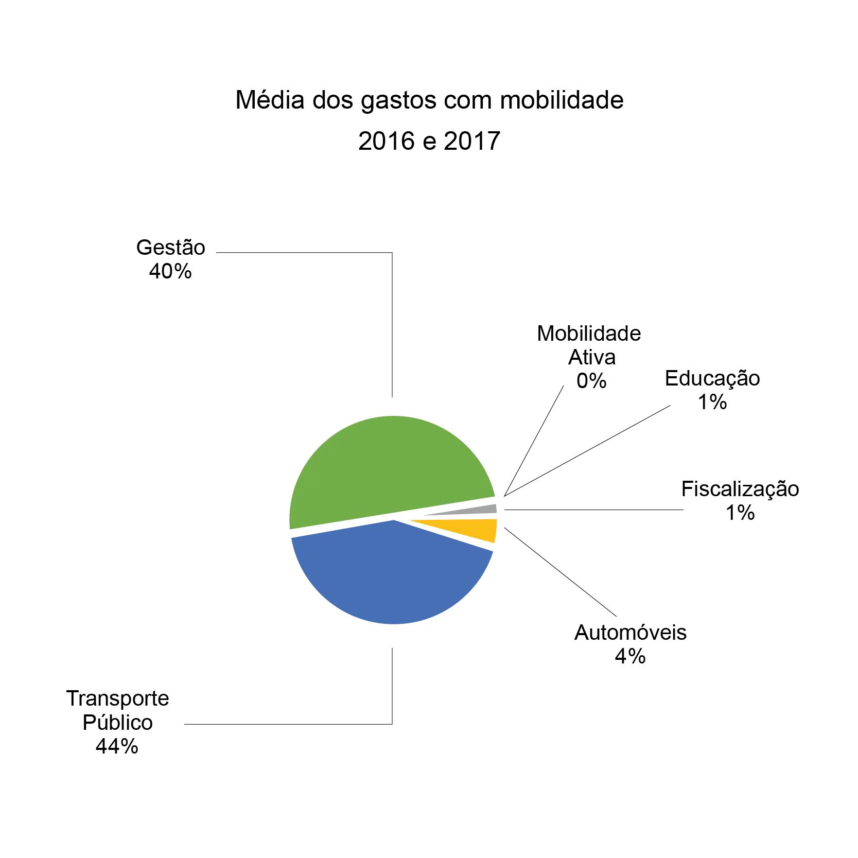 De maneira geral, fazendo uma média com a distribuição dos gastos com mobilidade nos dois anos, é possível dizer que o orçamento é dividido em gestão (48,99%) e transporte público (43,9%). Depois as ações voltadas ao automóvel (4,29%), fiscalização (2,08%), educação (0,39%) e mobilidade ativa (0,26%) completam a distribuição das despesas.