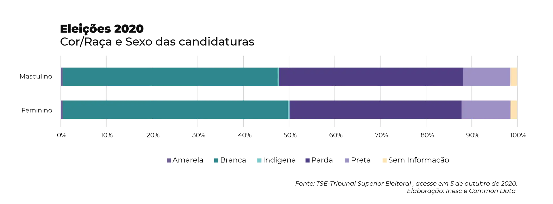 Ainda que com desigualdades profundas, as Eleições 2020 contarão com 88.555 mulheres negras disputando diferentes cargos. Destas, apenas 2,7% disputarão prefeituras. Adicionalmente, serão 706 mulheres indígenas, sendo que 111 disputarão os cargos de prefeita e vice-prefeita. Em um cenário de destruição do meio ambiente, avanço de ideias fundamentalistas e racistas, é fundamental reafirmar a necessidade de superar a sub-representação de grupos historicamente discriminados. Agora, cabe aos eleitores compreender a importância da diversidade no poder”, afirmou a assessora política do Inesc, que também é doutora em antropologia social.