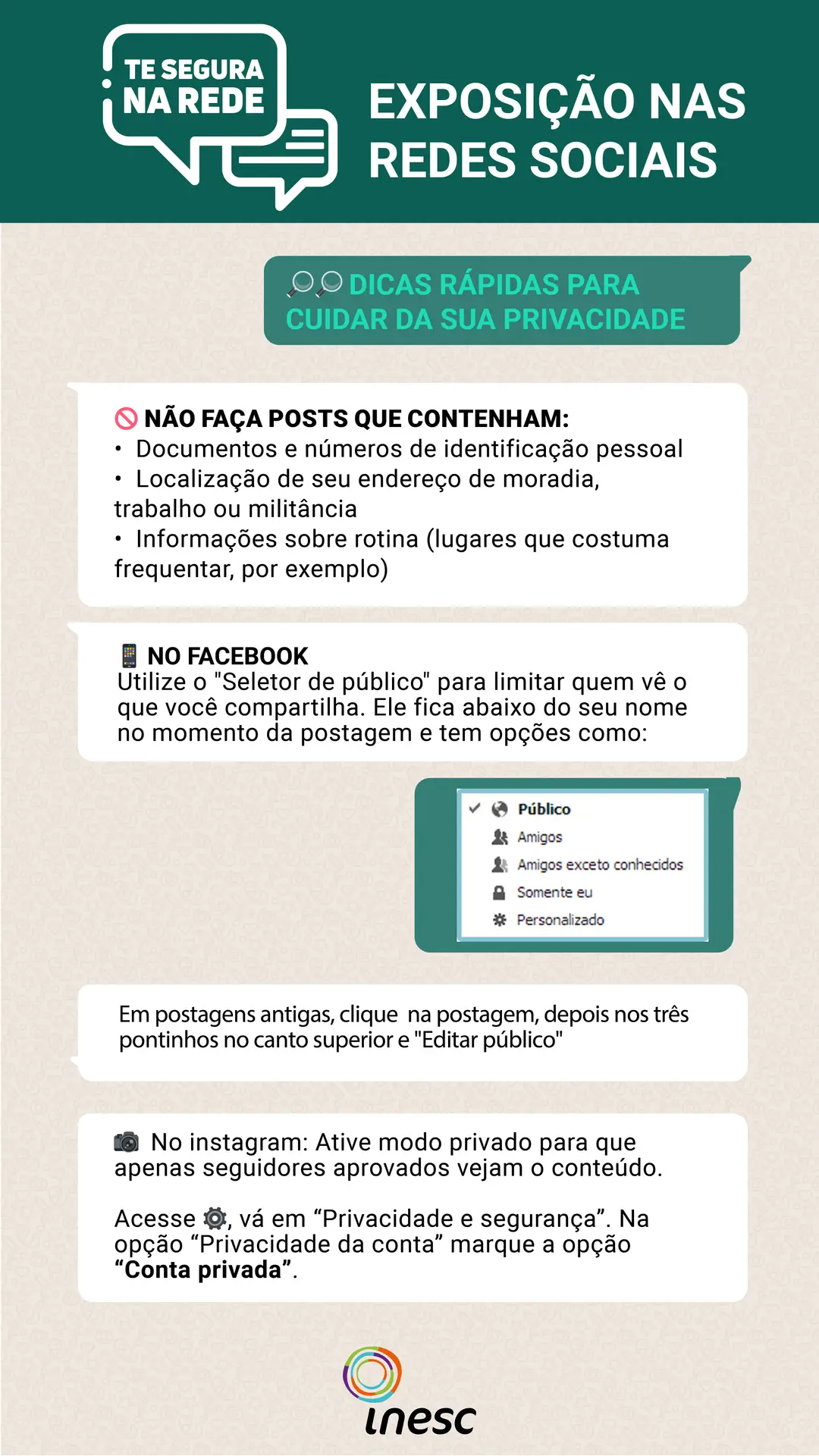 Com ampliação do uso da internet, por meio das redes sociais, temos a sensação de violação da privacidade e de um monitoramento contínuo das nossas ações cotidianas. Pensando nisso, criamos esta campanha para ajudar você a usar a internet com mais segurança.
