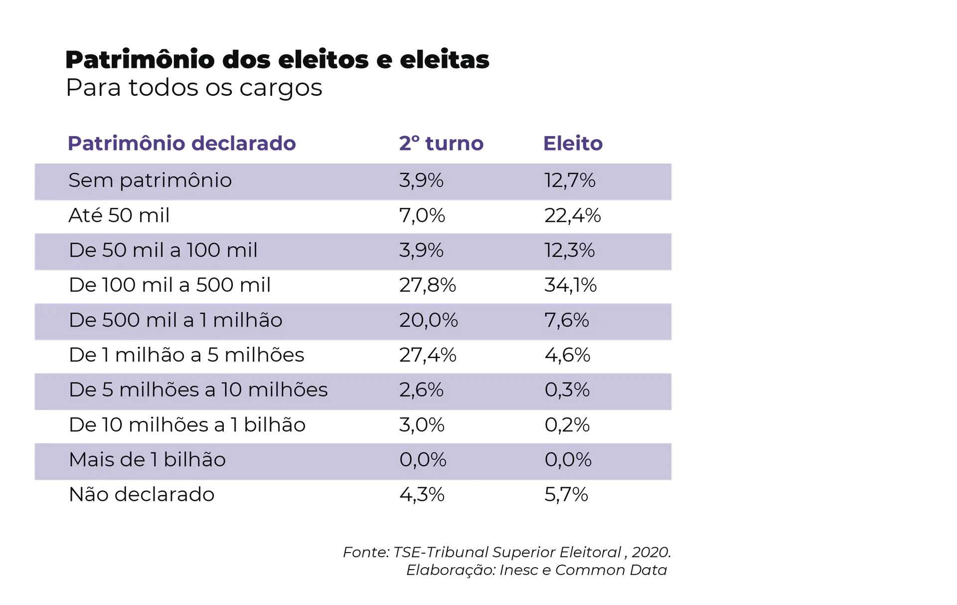 Em relação ao patrimônio, as candidaturas eleitas se concentram mais na faixa de R$ 100 a R$ 500 mil, R$ 1 milhão a R$ 5 milhões, e R$ 500 mil a R$ 1 milhão, respectivamente. Como demonstramos em artigo, cerca de 19,69% dos candidatos receberam pelo menos uma parcela do auxílio emergencial, e 30% das candidatas negras com patrimônio inferior a R$ 50 mil recorreram ao auxílio. Destas, se elegeram 170.