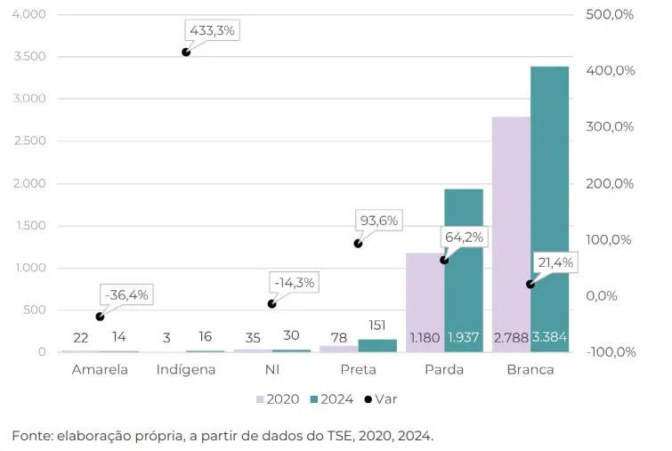 Candidaturas duplas por cor/raça nas eleições de 2020 e 2024: