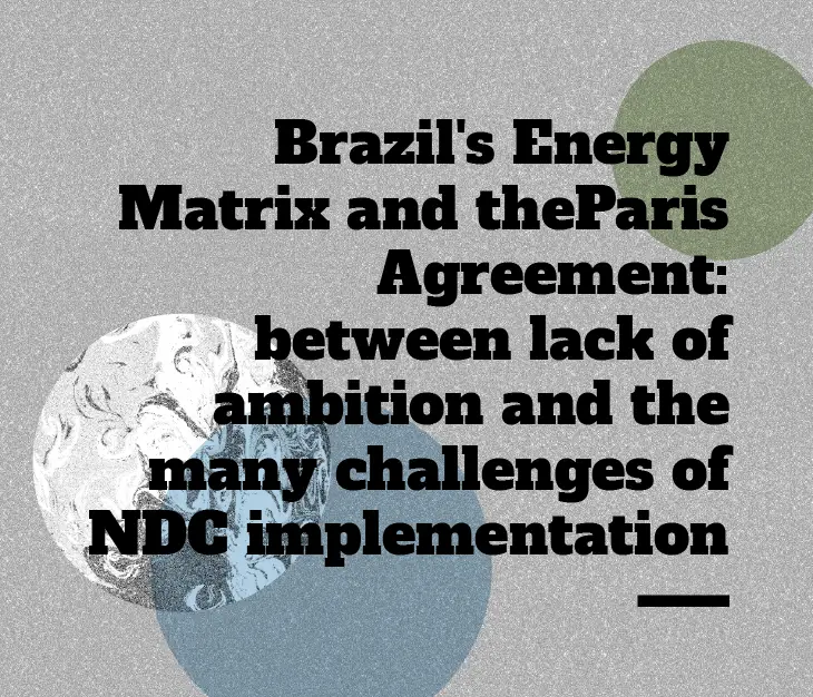 This study analyzes the NDCs drafted by the Brazilian government with regards to the energy sector, which counts on sectoral planning, plans, policy instruments and regulation, including transparency mechanisms.