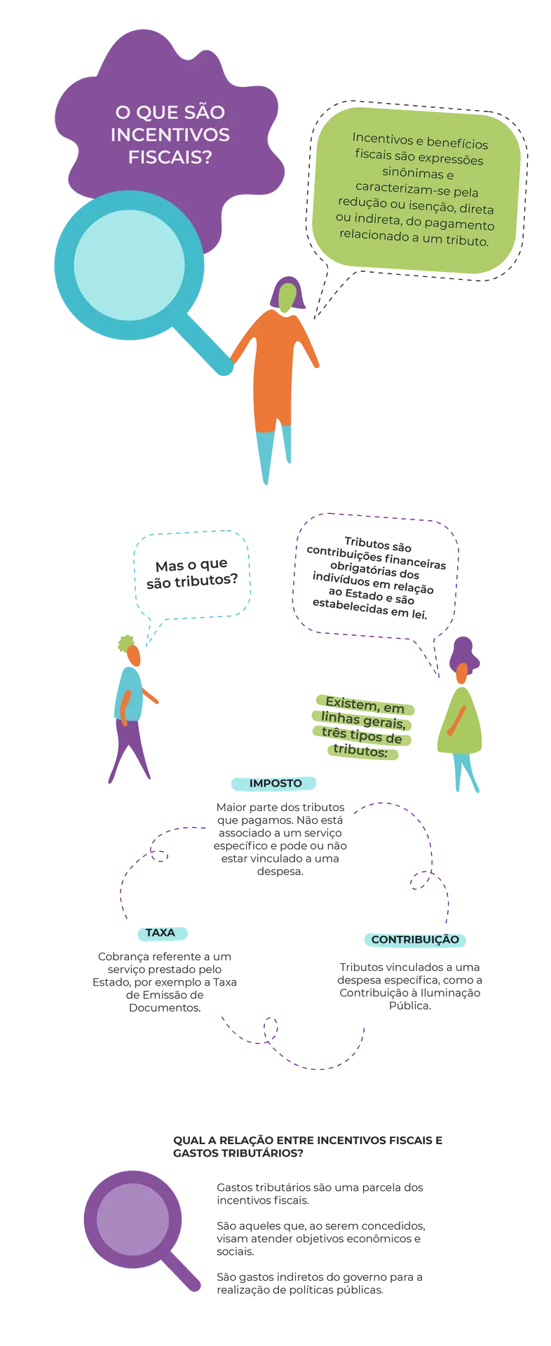 Os gastos tributários, como o nome já diz, funcionam praticamente como um gasto público, embora teoricamente sejam uma renúncia de receita. Em tese, são criados com algum objetivo específico, que pode ser, por exemplo, equalização de renda entre regiões, incentivo a setores econômicos ou mesmo uma vantagem tributária que vise atacar questões distributivas. Eles fazem parte do bolo de desonerações fiscais do governo e podem ser isenções, deduções ou outros benefícios de natureza tributária que reduzem a arrecadação potencial. Isenções ou benefícios fiscais podem, ou não, ser classificados pela Receita Federal como gastos tributários a partir de mecanismos legais, o que significa que esses são apenas uma parte do total de incentivos fiscais governamentais.