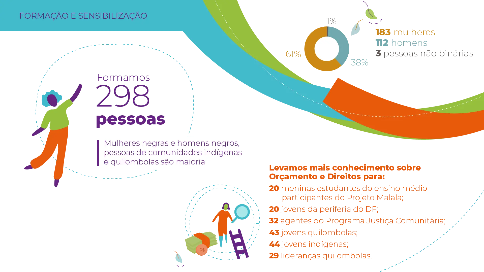 - Produção de informações para alimentar o debate eleitoral sobre os gastos com políticas públicas e a sub-representação de mulheres, pessoas negras e indígenas nos espaços de decisão.