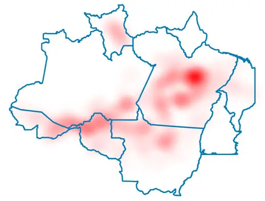 O cenário local influencia decisivamente neste cenário. A maior taxa de desmatamento foi registrada no Pará, com 39,5% do total na Amazônia, seguido de Mato Grosso, com 17,2%. Chama a atenção, no entanto, o caso de Roraima, que teve uma alta de 216,4%. No período, uma área de 617 km² foi desmatada no estado, a maior taxa já registrada desde 2004.