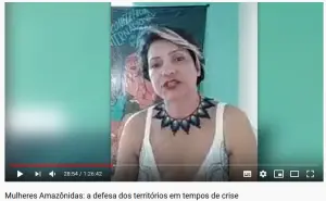 A primeira roda de conversa virtual, “Mulheres amazônidas: a defesa dos territórios em tempos de crise”, contou com a participação de Cledeneuza Maria Bizerra Oliveira, quebradeira de coco; Claudelice Santos, moradora do Projeto de Assentamento Extrativistas Praialta Piranheira e Clivia Regina da Silva Uhe, dirigente do Setor de Gênero do Movimento dos Trabalhadores Rurais Sem Terra (MST/Pará). O debate também teve a contribuição de Ailce Margarida Negreiros, socióloga e professora da Unifesspa, que realizou intervenções poéticas durante a transmissão.