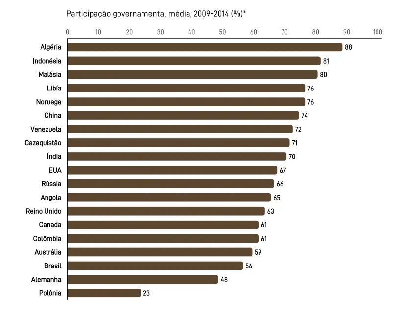 Por ser um país produtor, a União tem o direito de receber do setor petrolífero rendas governamentais: royalties, bônus de assinatura, o pagamento de tributos, e, no caso específico da Petrobras, os dividendos, por ser acionista da companhia. Ao dividir as rendas governamentais pela rentabilidade da empresa, tem-se o percentual de participação governamental – que, para 2021, foi de 47,1%.