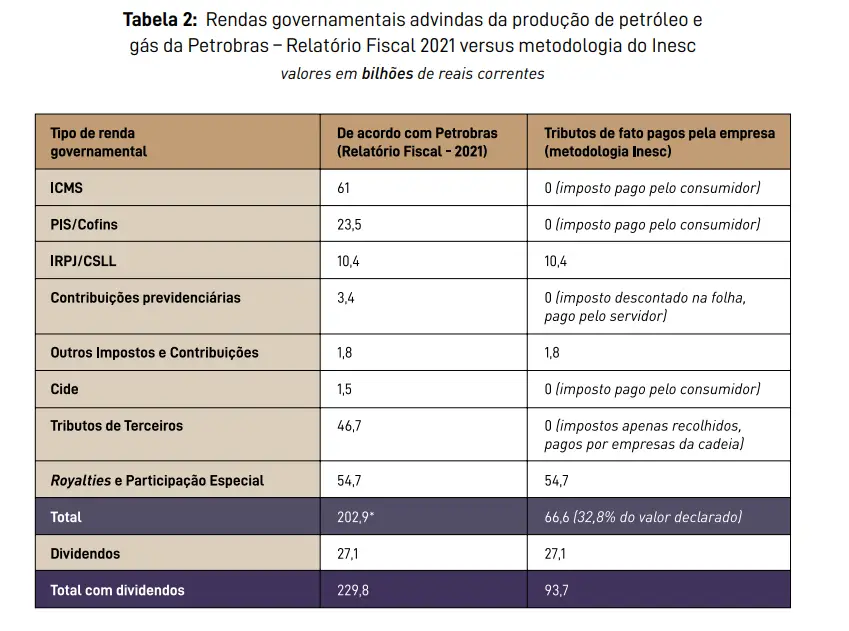 Do total da rentabilidade da Petrobras em 2021 com a produção de petróleo, menos da metade (47,1%) foi entregue, de fato, aos cofres públicos. Esse percentual foi calculado pelo Inesc (Instituto de Estudos Socioeconômicos) na mais nova análise intitulada “Petróleo: participação governamental, subsídios e injustiça fiscal” e vai de encontro às estimativas realizadas pela Petrobrás de quanto é sua contribuição ao governo brasileiro.
