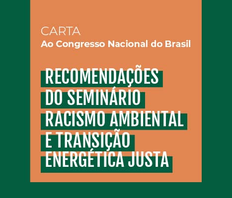 Carta ao Congresso Nacional do Brasil apresenta recomendações do Seminário Racismo Ambiental e Transição Energética Justa.