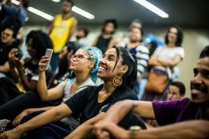 As pessoas que transitavam pela estação no horário de pico tiveram a oportunidade de assistir a um sarau com apresentações de teatro, música, e poesia por jovens artistas integrantes de projetos idealizados pelo Inesc, e muita dança charme com o grupo pegada Black.