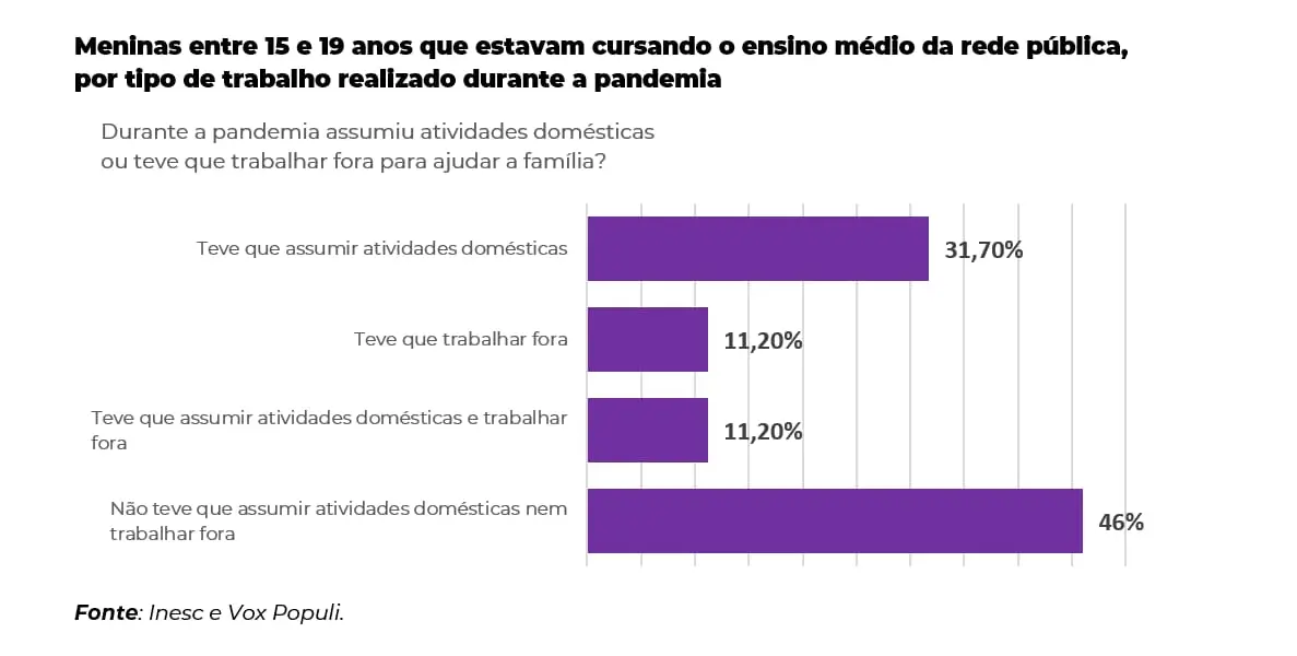 Ainda no grupo dos que dependem do governo para estudar, as meninas foram as mais prejudicadas ao assumir essas tarefas, segundo mostra o gráfico abaixo: